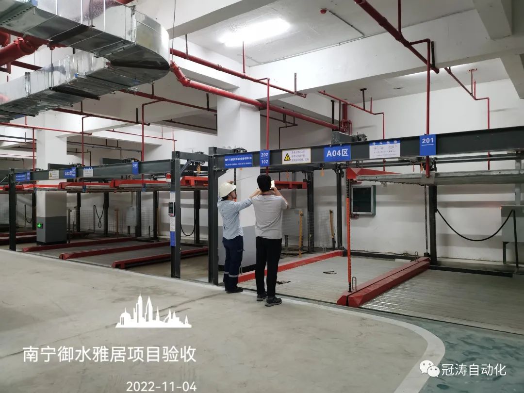 2022年11月4日,广西冠涛自动化设备有限公司承接的轨道·御水雅居机械式立体停车库项目顺利通过了特检院验收,同时获得了客户、监理、特检院等参检单位的一致好评……