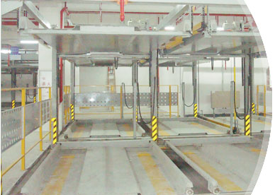 上层可升降,下层可横移。按提升方式主要分链条和钢丝绳二类。地上二层升降横移立体停车设备的升降载车板为四点防坠式结构,安全可靠,操作简便,维护方便对场地适应性好.可用于地上停车场也可以用于地下停车场.且可灵活组合成单列式,重列式等排列方式。 用PLC电脑控制.操作简单.存取车方便,设有安全挂钩,防坠落保护,充分保证车辆安全,光电检测,控制车辆规格及停放位置,使车辆有序停放,人员误入时运行自动停止,增加车库的安全系数,设有急停按钮,非常情况下能急停,避免发生意外事故。
